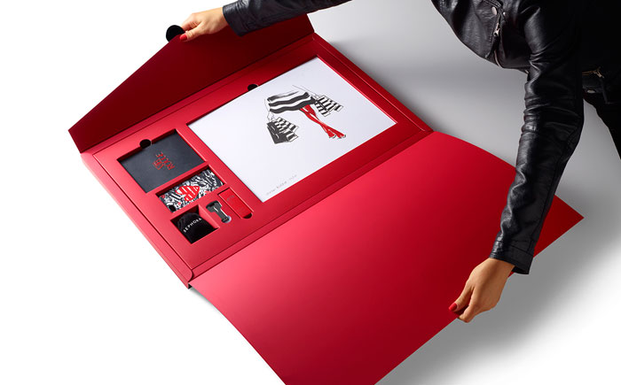在前面的每一個(gè)圓滑,黑色,16“x24”信封,是收件人的姓名寫在紅色的書法。內(nèi)部是大量柔軟的胭脂紅,每按試劑盒項(xiàng)目很好地存放在自定義威爾斯。包括一個(gè)VIB胭脂歡迎包,一個(gè)全尺寸的咬唇膏在自定義胭脂紅色燈罩,絲芙蘭品牌iPhone案件和耳機(jī),和限量版編號(hào)的版畫藝術(shù)家路維薩·布菲特簽署。新聞稿本身被加載到一個(gè)光滑的黑色USB驅(qū)動(dòng)器在一個(gè)關(guān)鍵的形狀。從絲芙蘭個(gè)人歡迎信放在上面。”