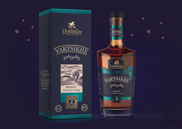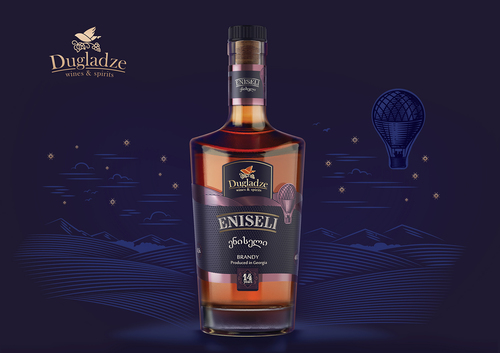 想象一下坐著,放松,喝上一些精致的白蘭地。dochery設計標簽,統一由公司dugladze長期陳釀白蘭地的生產整個產品線。