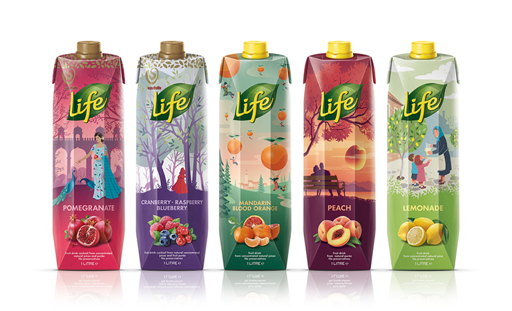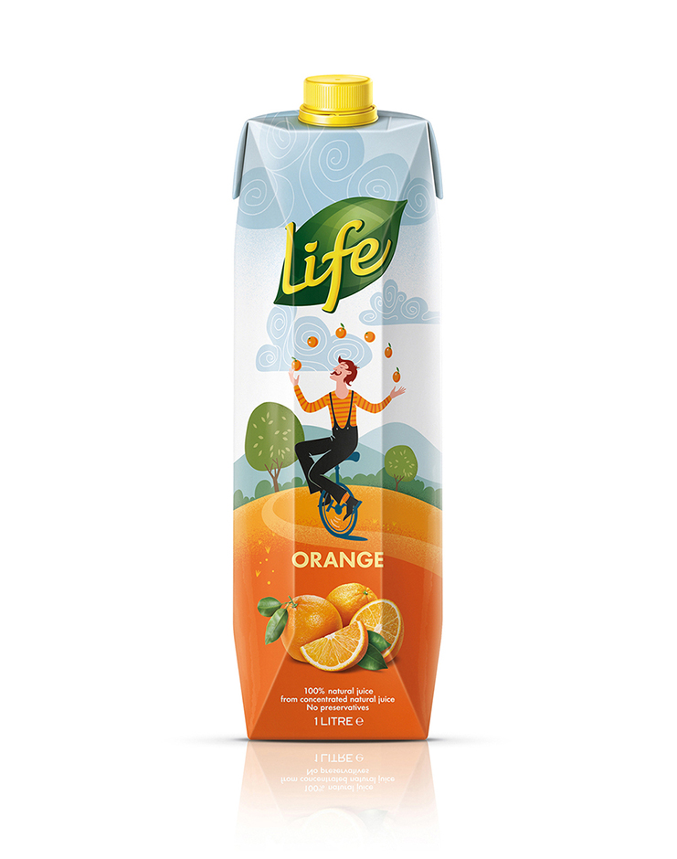 水果汁的生活范圍兩年前就進入了市場,從第一天開始就一直在商店貨架上雕刻出一個。他們的包裝設計遵循顯示超大水果照片預計公式,爆開的多汁性和活力。不幸的是,這一藝術方向與競爭對手的海上混合在一起。只有兩年的時間,生活的果汁作出了大膽的決定,重新設計他們的整個包裝線。的主要目標是一個強大的貨架的存在,將捕捉消費者的眼睛。
